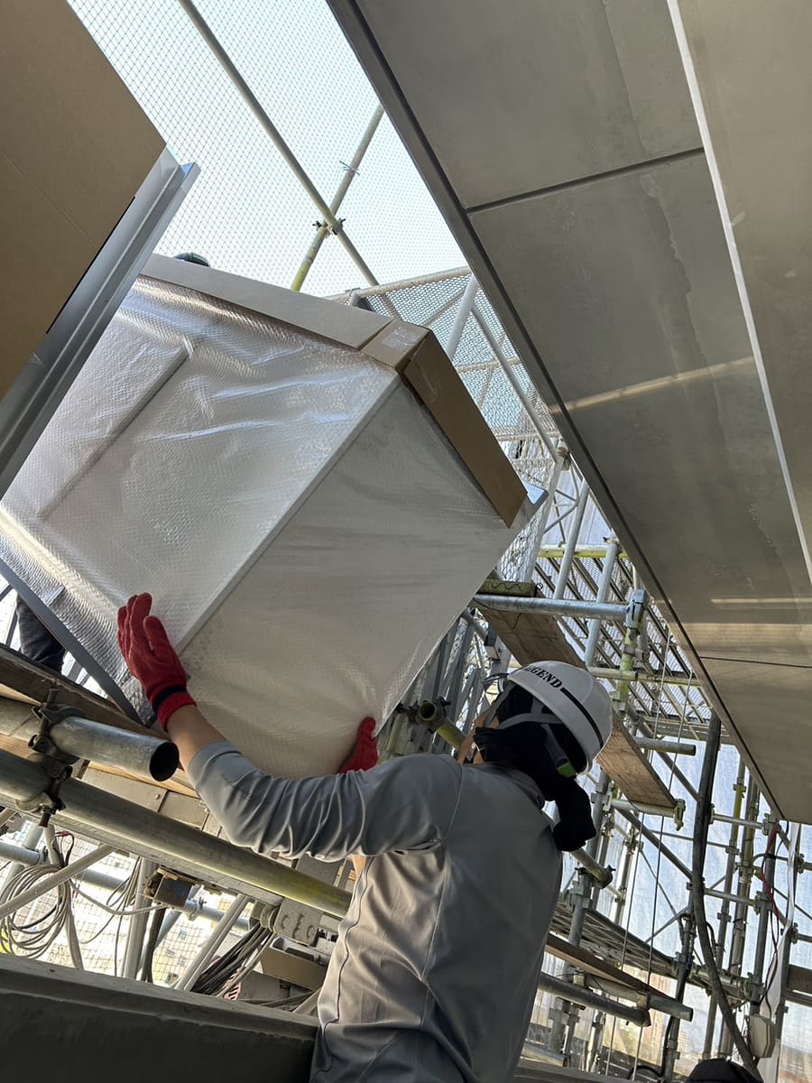 建築現場での揚重(荷揚げ)、